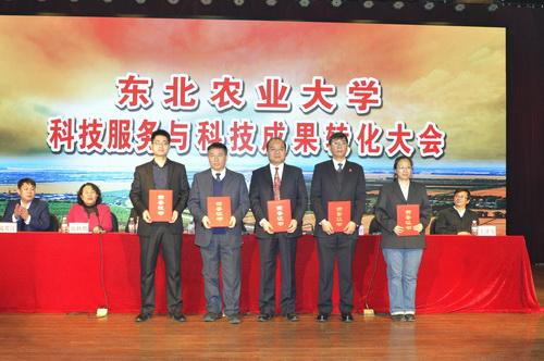 会议包括五项内容,校党委副书记马宏坤宣读《关于表彰“十二五”获得学校先进集体和先进个人的决定》(以下简称《决定》);校领导向受表彰先进集体代表及先进个人颁奖;校长包军作题为《立足龙江,面向三农,围绕龙江优势资源和特色产业推动成果产业化》的工作报告,总结“十二五”以来学校在科技服务、成果转化方面取得的成绩,分析当前存在的主要问题,部署今后一段时期的重点工作中心任务;新农村发展研究院常务副院长孙占峰作《伟德国际1946关于推进科技成果转化与激励人才创新创业的实施意见》解读说明;校党委书记冯晓就《提高科技供给能力,推进创新驱动发展》作了重要讲话,提出了具体要求。