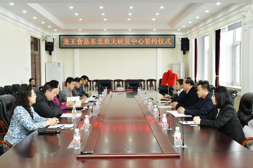 12月23日上午,“龙王食品东北农大研发中心”签约仪式在我校主楼604会议室举行。黑龙江农垦龙王食品有限责任公司董事长兼总经理李忠珠、技术部经理邵志远、检验中心主任邹文瑶、技术研发部经理刘海静;我校副校长郑秋鹛,新农村发展研究院常务副院长孙占峰、副院长朱志猛,bevictor伟德国际1946党委书记张显伟、副院长刁铁军、许晓曦教授等参加签约仪式。签约仪式由孙占峰主持。