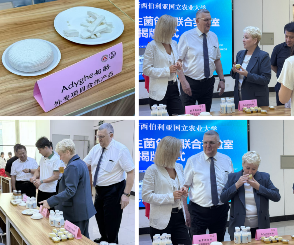 仪式现场,两校领导共同品鉴由双方合作研发的多款产品,并就进一步深化合作达成重要共识。我院科研团队重点展示了近期联合开发的格瓦斯、酸奶、奶酪等系列产品,现场嘉宾进行品尝与体验,并对相关成果的创新性、实用性与应用潜力给予了高度评价。品鉴期间,双方围绕产品优化路径、市场转化策略以及科研协同机制等议题展开了深入交流,明确将以共建实验室为平台,持续整合双方技术优势与资源,共同推动合作走向深入。