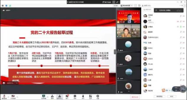 宣讲会上,许静波从深入了解二十大报告起草过程入手,带领全体学员深刻领会大会主题和主要成果,深刻领会过去5年的工作和新时代10年的伟大变革,深刻领会马克思主义中国化时代化,深刻领会以中国式现代化全面推进中华民族伟大复兴,深刻领会全面建设社会主义现代化国家的目标任务,深刻领会坚持党的全面领导和全面从严治党的政治责任、主要任务,深刻领会团结奋斗的时代要求等方面,对党的二十大精神进行了全面深入的宣讲解读。同时,她强调,要把党的二十大精神的学习,作为当前和今后一个时期的首要政治任务去落实,深刻领悟教育科技人才对国家发展的重要意义,并就学习宣传贯彻党的二十大精神和未来教育事业发展方向提出了一些新思路、新目标、新举措。