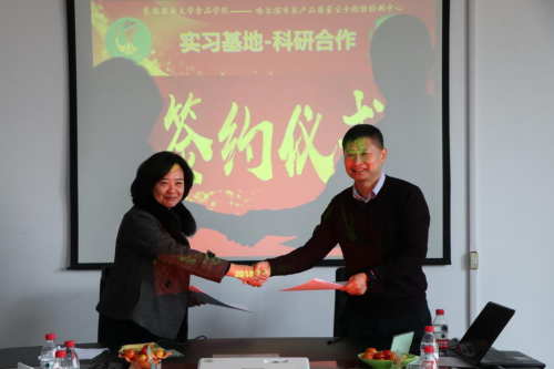会上,双方共同签署了bevictor伟德国际1946与哈尔滨市农产品质量安全检验检测中心共建科研合作及教学实习基地协议。