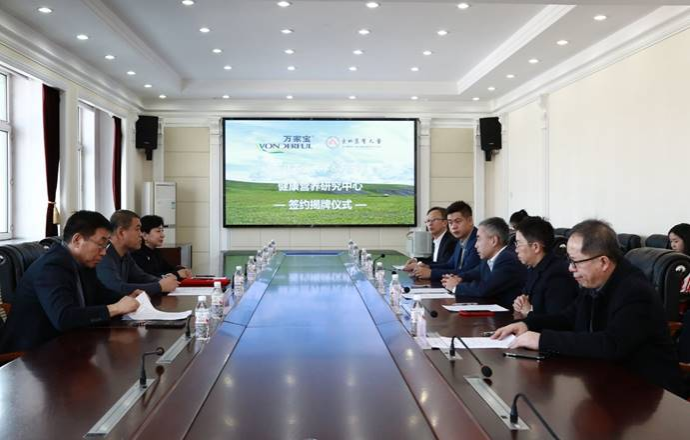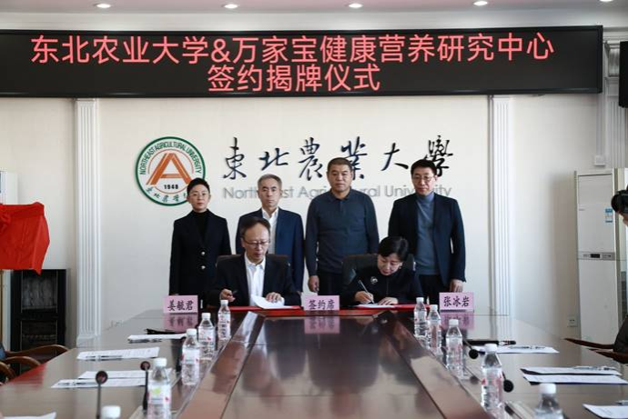 签约揭牌仪式上,王伟峰向一直以来与学校保持紧密合作的万家宝鲜牛奶集团的领导们表示热烈欢迎。他表示,“健康营养研究中心”的建成将使双方的合作关系更加紧密,希望双方聚焦校企合作目标,发挥创新平台优势,建立长效运行机制,聚焦乳及发酵乳制品、冰品等食品配方、品质、安全等领域,提升科技创新能力,加速科技成果落地转化,为行业的发展、龙江全面振兴全方位振兴作出新的更大贡献。