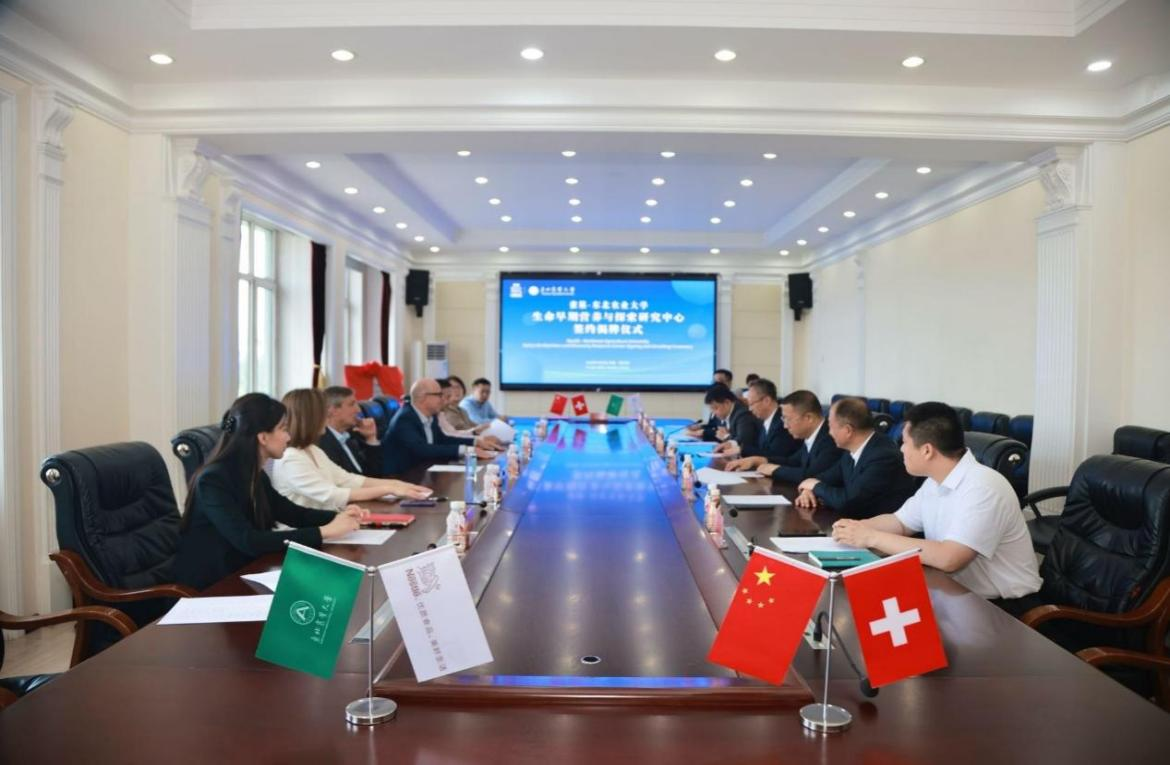 姜毓君对研究中心的成立以及目前取得的进展表示祝贺,他介绍了我校在乳品科学研究方面的雄厚基础,以及与国内外乳品企业尤其是与雀巢公司此前多方面合作的情况。他表示,希望双方以此次研究中心揭牌为新起点,依托雀巢全球研发实力与我校科研优势,通过双方高水平长期战略合作,共同推动乳品科学与生命早期营养研究的创新突破。