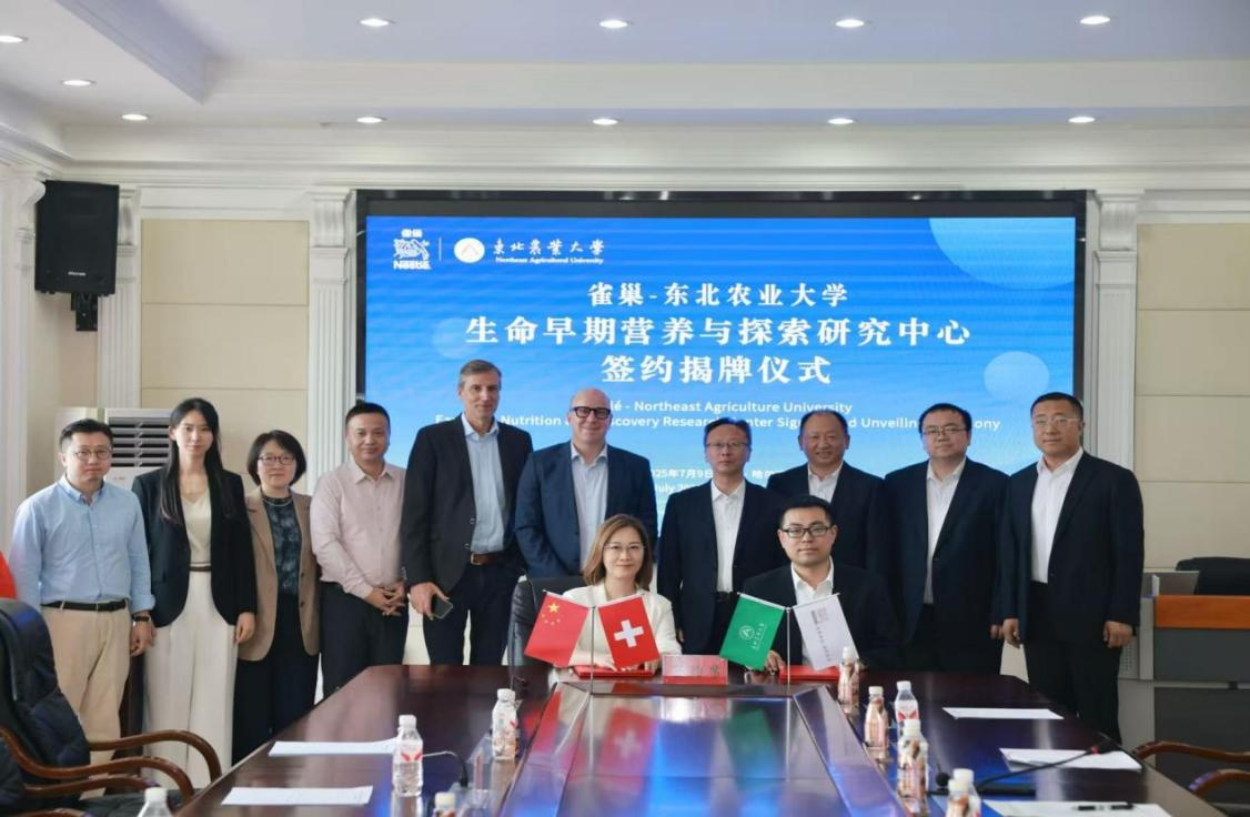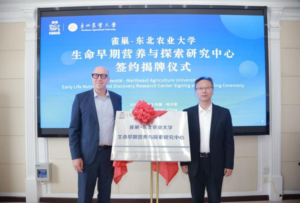 7月9日,“雀巢——伟德国际1946生命早期营养与探索研究中心”签约揭牌仪式在我校举行,雀巢公司全球婴幼儿营养研发负责人Marc Alder、全球婴幼儿营养产品开发负责人Peter Erdmann、中国婴幼儿营养首席医务官杨燕涛、惠氏营养品医学科学事务负责人董杰、中国婴幼儿营养研发负责人姚漫江和中国婴幼儿营养研发营养科学经理姜楚琦,我校副校长姜毓君、社会合作与成果转化中心(新农村发展研究院)主任(院长)李其林、我院党委书记施喜军、院长李良、副院长刘骞、乳品工程系副主任李柏良等参加签约揭牌仪式。李良主持仪式。