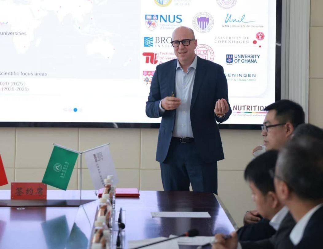 Marc Alder介绍了雀巢核心领域、研发情况、市场布局及合作领域。他表示,我校在乳品科学领域的专业能力为联合研究中心奠定了坚实基础,通过知识共享与联合攻关,共筑乳品科研新高地,助力中国婴幼儿在生命最初阶段获得最佳营养与健康。