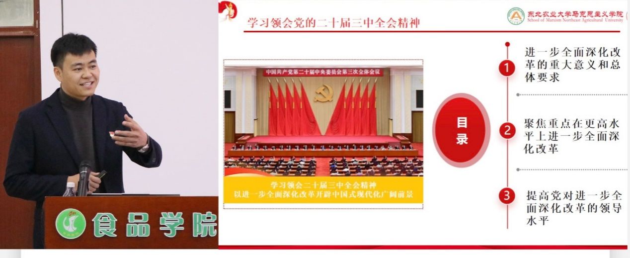 为深入学习贯彻党的二十届三中全会精神,进一步准确理解和深刻把握全会精神实质,引导学院师生切实把思想和行动统一到全会精神上来。10月30日下午,我院召开学习贯彻党的二十届三中全会精神专题宣讲报告会,邀请了全国高校思政课教学展示一等奖获得者、全国青马工程理论导师、省委理论宣讲团成员、伟德国际1946马克思主义学院副教授侯坤作专题宣讲,学院党委书记、副书记及全体教师党支部书记、学生党支部书记聆听宣讲报告,会议由正处级辅导员崔丽主持。