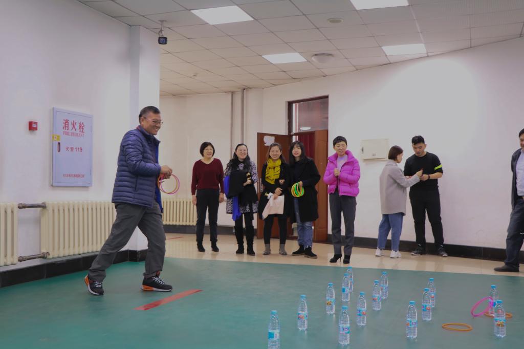 bevictor伟德国际1946党委书记张显伟、院长江连洲与女教工一同参加了趣味游戏活动。