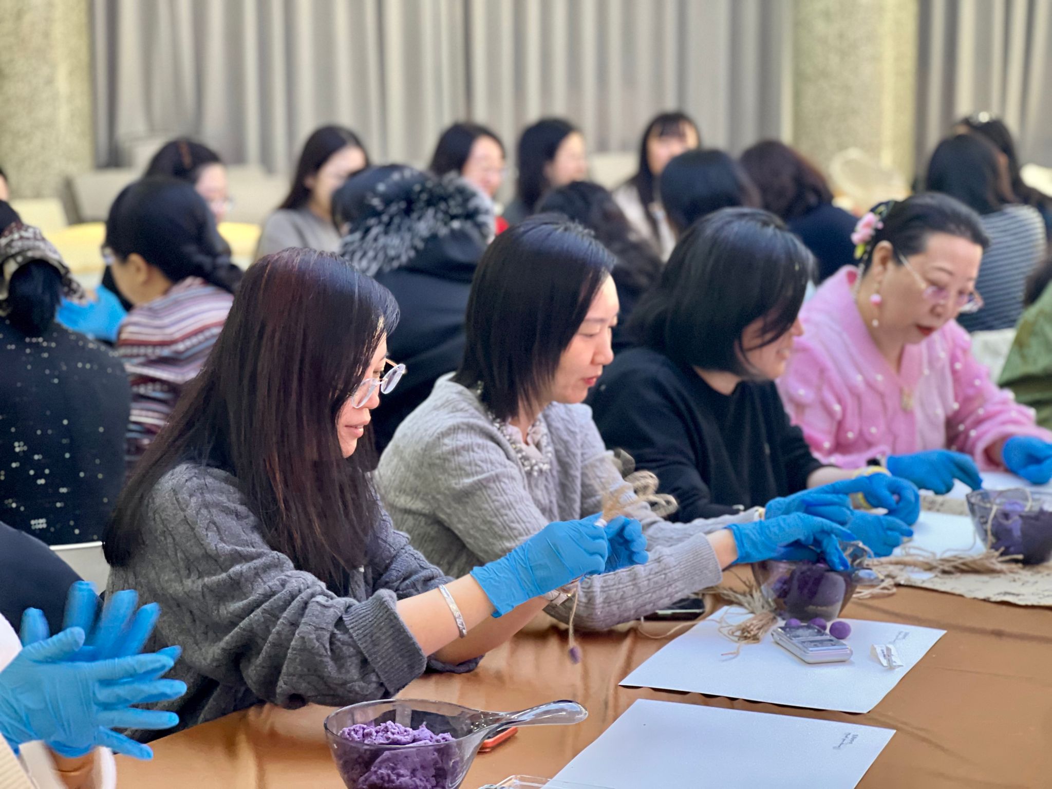 短短一个多小时,一串串造型精美、香气扑鼻的葡萄手工皂便陆续亮相。捧着自己亲手制作的作品,女教工们笑意盈盈,纷纷拍照留念,记录下这份独特的节日记忆。