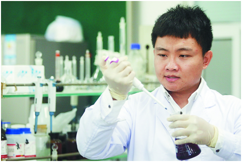 隋晓楠在实验室进行大豆蛋白研究实验