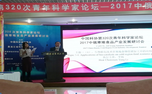 2017年9月24日-26日,中国科协第320次“中俄寒地食品产业发展研讨会”青年科学家论坛在哈尔滨商业大学酒店举行。本次论坛由黑龙江省科学技术协会与黑龙江省食品科学技术学会承办,共有近150名从事食品工程及寒地食品资源相关研究领域的青年专家和学者代表参会。会议期间,来自国内外20多家科研院所和高校的青年专家学者针对中俄两国寒地食品产业的共有问题展开集中讨论和广泛交流,共同探讨寒地食物资源加工技术、生物催化技术等前沿科技在食品工程中的应用。我校bevictor伟德国际1946侯俊财教授和李杨副教授受邀作为论坛执行主席,分别主持了题为“寒地食物资源生物活性成分研究”和“生物催化技术在寒地食物资源加工中的应用”的分论坛探讨。会议期间,我校bevictor伟德国际1946李杨副教授、隋晓楠副教授、腾飞讲师,陈倩讲师及博士研究生张巧智分别作了精彩的专题学术报告。