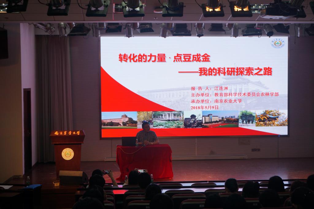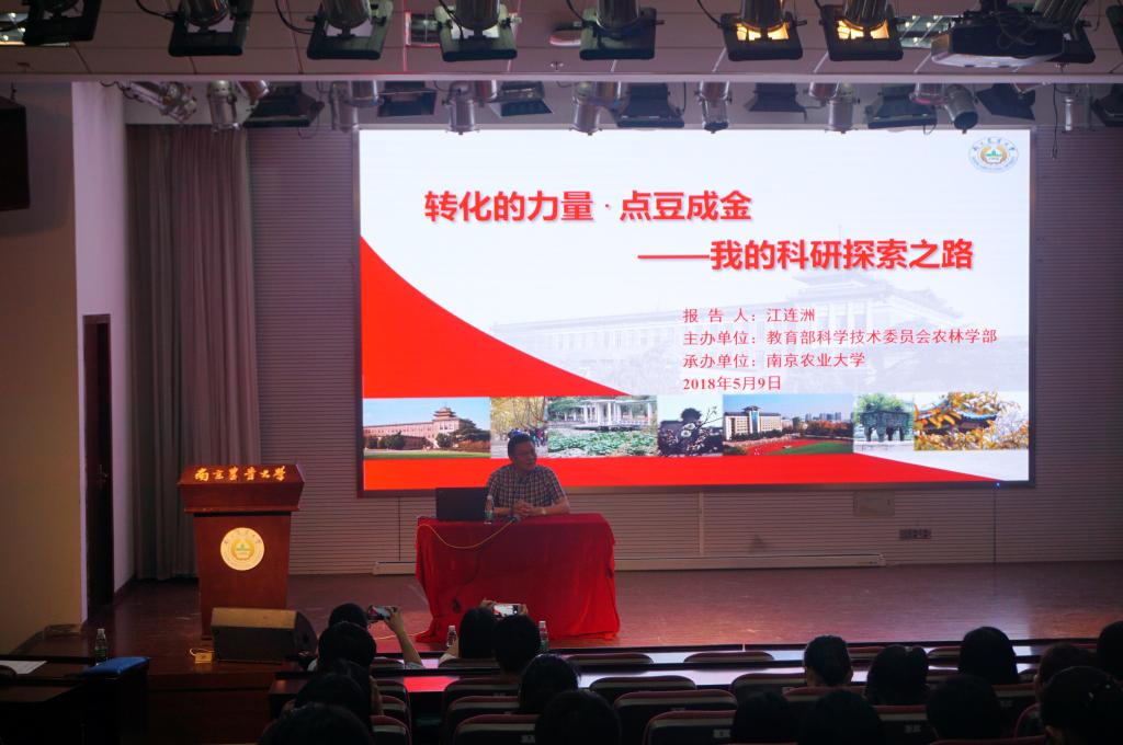5月9日,我校bevictor伟德国际1946院长江连洲教授应教育部科学技术委员会邀请,在南京农业大学教学楼第四报告厅做了题为“转化的力量之点‘豆’成金——我的科研探索之路”的学风报告,共有300余位学生和教师参加并听取了报告会。江连洲教授在介绍了自己的教育、科研工作经历后,围绕“责任、热爱、坚持、奉献”四个主题阐述了自己选择大豆事业作为一生孜孜不倦的追求目标,展示了“点豆成金”不平凡的科研探索之路。江连洲教授在报告中流露出的对大豆科研和教育事业的历史和现实的民族责任感,对自身研究领域30多年的热爱、坚持与执着,以及对产业和社会无私奉献的精神引起了现场听众的强烈共鸣。