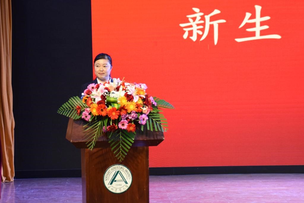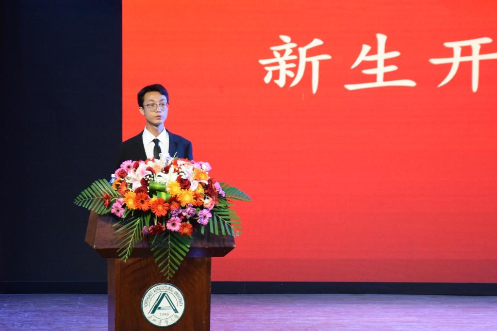 2015级本科生、国家奖学金获得者祁新华同学的发言,凝聚了所有老生对新同学的真心祝福。她说:“在大学,‘学’是根本,作为一名学生‘学习’是永恒的使命。勤能补拙,努力终会有回报;要勇于实践、学以致用;要不忘初心,砥砺前行”。祁新华还表达了对学校和学院的感恩与祝福。