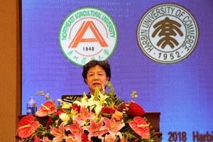 中国工程院院士、中国食品科技学会副理事长、国家海洋食品工程技术研究中心主任朱蓓薇教授致辞。她表示本次论坛的主旨就是要交流研讨国际食品产业科技发展动态,增强我国“一带一路”中蒙俄经济走廊及日韩等东北亚地区的食品产业科技交流与合作,提升我国食品产业科技成果国际化水平。