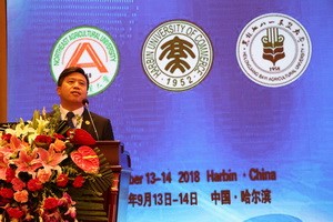 我校校长包军在会上致欢迎词。他向出席本次活动的中外贵宾表示欢迎,向长期以来关心、支持我校发展的各界友人表示衷心感谢。他表示,bevictor伟德国际1946是我校特色学院。食品科学与工程学科,是我校世界一流伟德国际群重点建设学科。学院所拥有的教育部重点实验室、国家级实验教学示范中心、国家级研究中心、省级创新基地等平台,为中国食品行业乃至东北亚食品产业的合作奠定了坚实的基础。在全球科技革命变革演变的背景下,区域融合、协同创新、合作共赢是本次论坛的主题,也是多方共承时代使命、共担创新责任、共享发展成果的所向所指。最后,他还借此机会欢迎各位来宾到东农一起欢度学校70华诞。