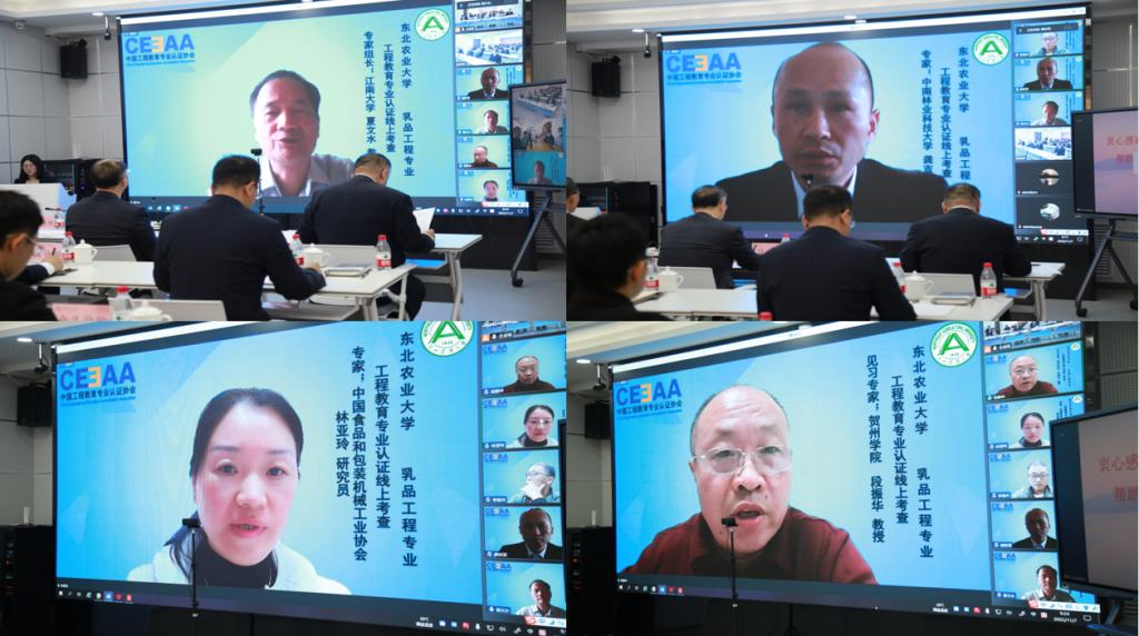 件等7个通用标准的达成情况。专家组组长夏文水教授与我校教务处、评估中心、学生工作部、团委、财务处等职能部处负责人,以及bevictor伟德国际1946专业建设负责人、学生工作负责人、乳品工程系负责人进行了一对一在线访谈。专家组其他成员分别与乳品工程专业12位教师代表、10家用人单位代表、11位毕业生代表进行了一对一线上访谈,与39名本科各年级学生代表进行了线上座谈。