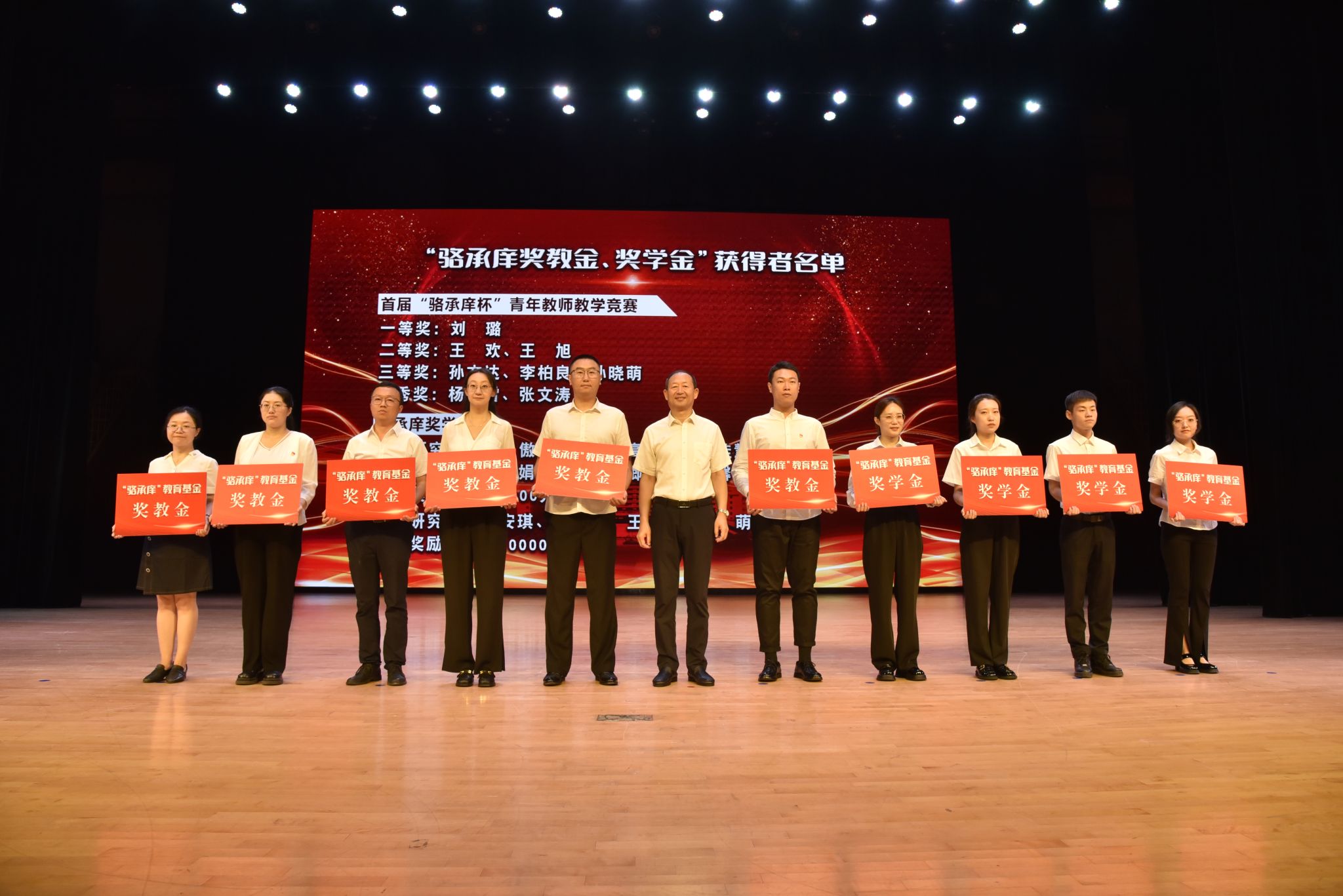 陈历俊、朱宏和车可舒同时按动“骆承庠教育基金”启动球,与会人员共同见证了“骆承庠教育基金”正式成立。bevictor伟德国际1946党委书记潘俊波宣读《关于颁发骆承庠奖学金、奖教金的决定》。