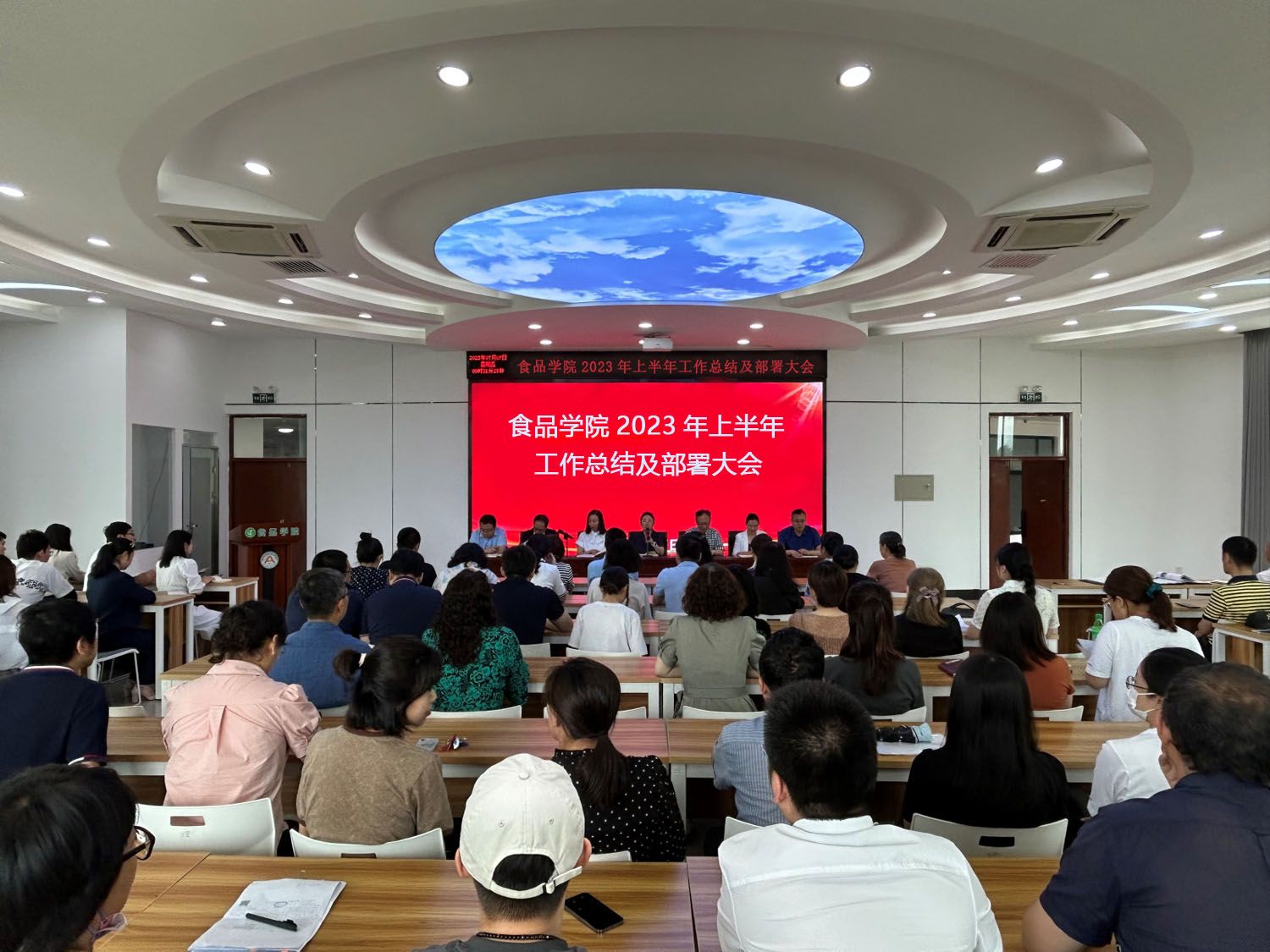 学院领导班子成员就分管工作进行了梳理总结,同时对下一步开展工作进行了部署。正处级辅导员崔丽介绍了本学期开展党建品牌的建设进展及学院网站数据维护情况,并就假期继续开展“党建赋能、食安天下”视频号微课堂的拍摄以及丰富完善学院网站内容做了相关安排;党委副书记钱芳围绕学生党团建设、毕业生就业、创新竞赛参与等方面总结了上半年工作,着重对暑期推进就业、筹备迎新工作做出了细致安排;副院长刁铁军对第三轮岗位设置与聘用、国有资产管理、实验室安全等方面工作进行总结,部署下一阶段工作;副院长侯俊财总结了上半年科研、社会服务工作取得的成绩和荣誉,并鼓励老师充分利用假期,谋划申请国家自然科学基金相关工作,提升申报质量。积极走访企业,开展对接合作,提高成果转化能力;副院长李良从本科教学任务完成情况、专业建设、课程建设、学生创新能力培养等四个方面对教学工作进行总结,对暑假教学工作特别是本科实验室安全,食品质量与安全和粮食工程两个专业认证申报,现代产业学院建设,省级教学成果申报等进行了系统安排。
