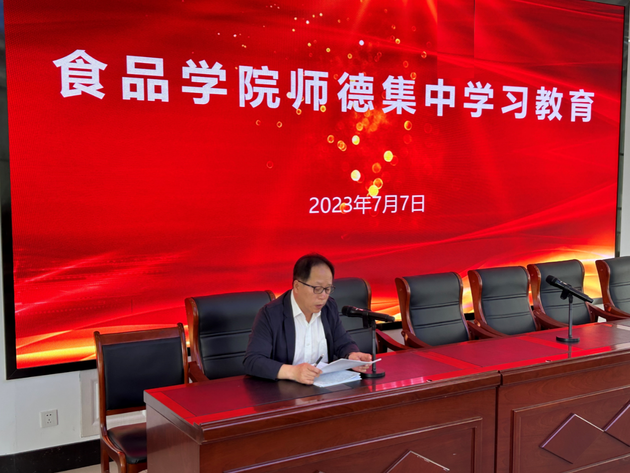 7月7日上午,我院在食品实验楼315会议室召开全院大会,总结学院2023上半年主要工作,部署暑期拟开展工作,同时召开安全工作会议、师德集中学习教育会议。学院全体教师参加会议,会议由学院党委书记潘俊波主持。