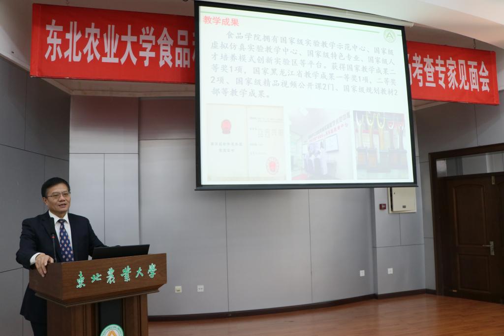 随后,专家组组长殷涌光介绍了此次考查的目的和考察方法。我院院长江连洲教授对自评报告中未充分说明的内容进行了补充。专家就自评报告有关问题向专业负责人及学校相关部门进行了提问。