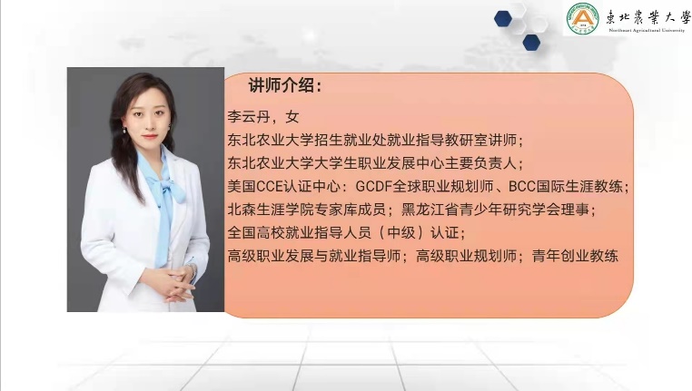 为使学生对职业生涯规划有更加全面的认识,提高个人的技能和实践工作的技巧。增强在校大学生的社会竞争力,架起学生与社会沟通的桥梁,搭建学生求职交流的平台,bevictor伟德国际1946于11月13日下午三点特邀请高级职业生涯规划师李云丹老师为2018、2019级同学开展了一次以“弱水三千,取我所需”为主题的就业指导的讲座,正处于疫情防控特殊时期,本次会议采用线上方式进行。会议由2018级本科生辅导员任萌老师主持。