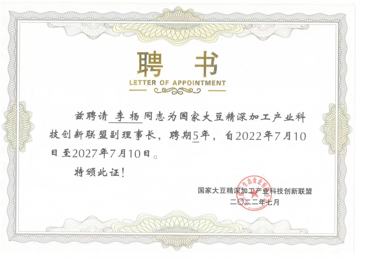 7月10日,在国家大豆精深加工产业科技创新联盟成立大会上,我院粮食、油脂及植物蛋白工程学科带头人、教授、国家大豆工程技术研究中心执行主任李杨,当选国家大豆精深加工产业科技创新联盟副理事长。