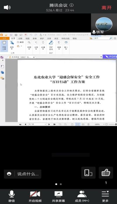7月25日下午,bevictor伟德国际1946利用腾讯网络研讨会形式召开“迎盛会保安全”安全工作“百日行动”工作部署会,全体班子成员、全院教师、在籍研究生等近500人参加。会议由院长姜毓君主持。