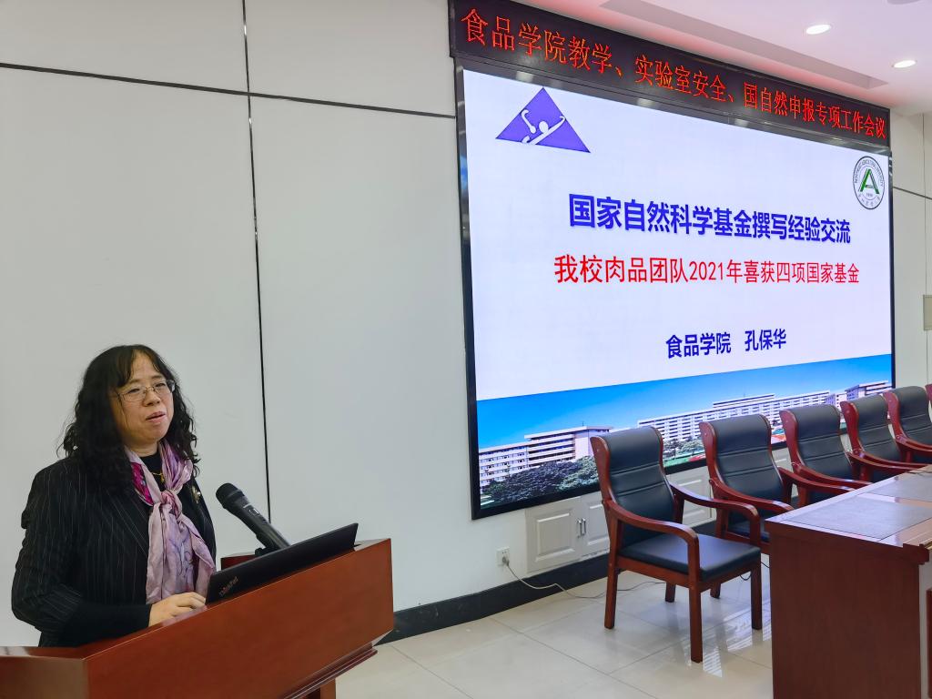 2021年,bevictor伟德国际1946肉品团队2021年喜获四项国家基金项目资助。会议最后,该团队负责人孔保华教授向全体与会教师做了专题分享报告。孔保华详尽介绍了肉品团队的教师基本情况、科研获奖、代表性科研项目、论文发表及对外交流情况,还为广大教师详细说明了国自然撰写前的准备工作,结合肉品团队的已获得的多项国家自然科学基金项目的示例,剖析了撰写项目名称、摘要、科学问题属性、立项依据、研究内容、目标和关键问题、研究方案的制定、可行性分析、特色与创新、年度计划与预期结果、研究基础等方面存在的问题和注意事项,分享了基金申报经验,对提高学院教师项目申报的积极性和基金申报质量起到了很好的促进作用。