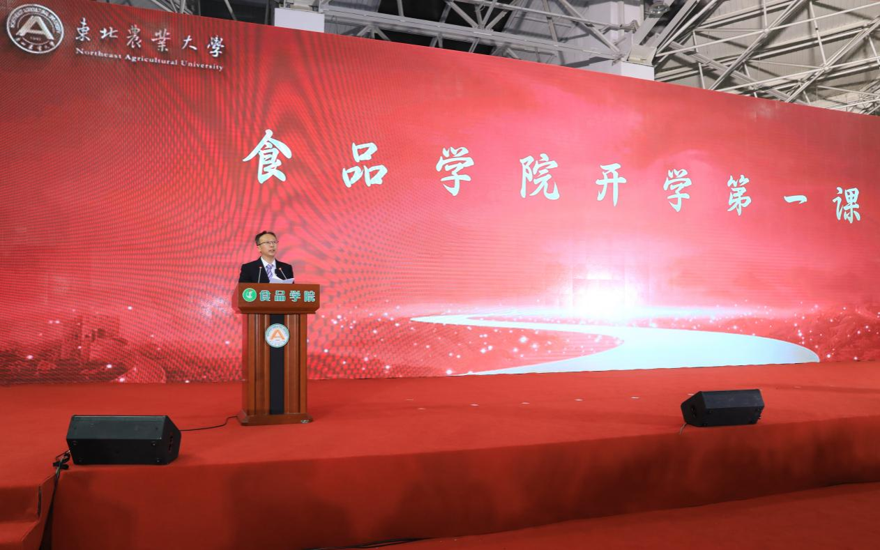 姜毓君向所有受到表彰的先进集体和优秀个人表示热烈的祝贺,向关心食品、支持食品的学工部等有关职能部门表示衷心的感谢,向长期以来辛勤工作、潜心育人的学院教师们表示崇高的敬意。他向同学们介绍了学院过去一年在科学研究、专业建设、育人育才上取得的突出成绩,并对同学们提出三点希望。一是要厚植家国情怀,筑牢如磐信念,传承东农的历史传统与精神内核,铭记抱负与责任,把人生梦想汇入时代洪流。二是要厚培专业本领,弘扬科学家精神,以“爱国、创新、求实、奉献、协同、育人”的新时代科学家精神,拓展学术视野,树立宏伟目标,提升专业本领,共同守护好我们的“饭碗”“餐桌”。三是要厚积实践技能,磨砺坚韧品格,关注国家战略、社会需求和民生需要,秉承艰苦奋斗精神,以实际行动践行社会责任,踔厉奋发谱写东农食品学子新篇章。
