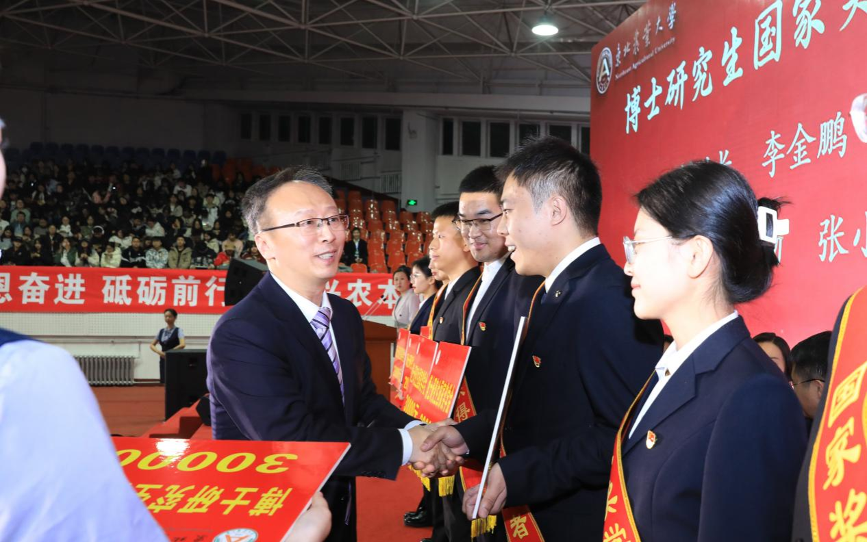 于兴业宣读《关于颁发2022—2023学年度本科生国家奖学金、国家励志奖学金的决定》;姜毓君宣读《关于颁发2023年研究生国家奖学金的决定》;崔丽宣读《关于表彰2023年黑龙江省普通高等学校“三好学生”的决定》;李良宣读《关于颁发2022—2023学年度本科生单项奖学金、大学生年度人物的决定》;刁铁军宣读《关于表彰2022—2023学年度本科生先进班集体、星级文明寝室的决定》;金靖博宣读《关于表彰2022-2023学年度研究生先进班集体、优秀研究生干部的决定》;张鑫琳宣读《关于表彰2022-2023学年度优秀研究生及省级以上优秀个人的决定》。共计16个先进集体、546个优秀个人获得表彰。与会领导为获奖学生颁奖。