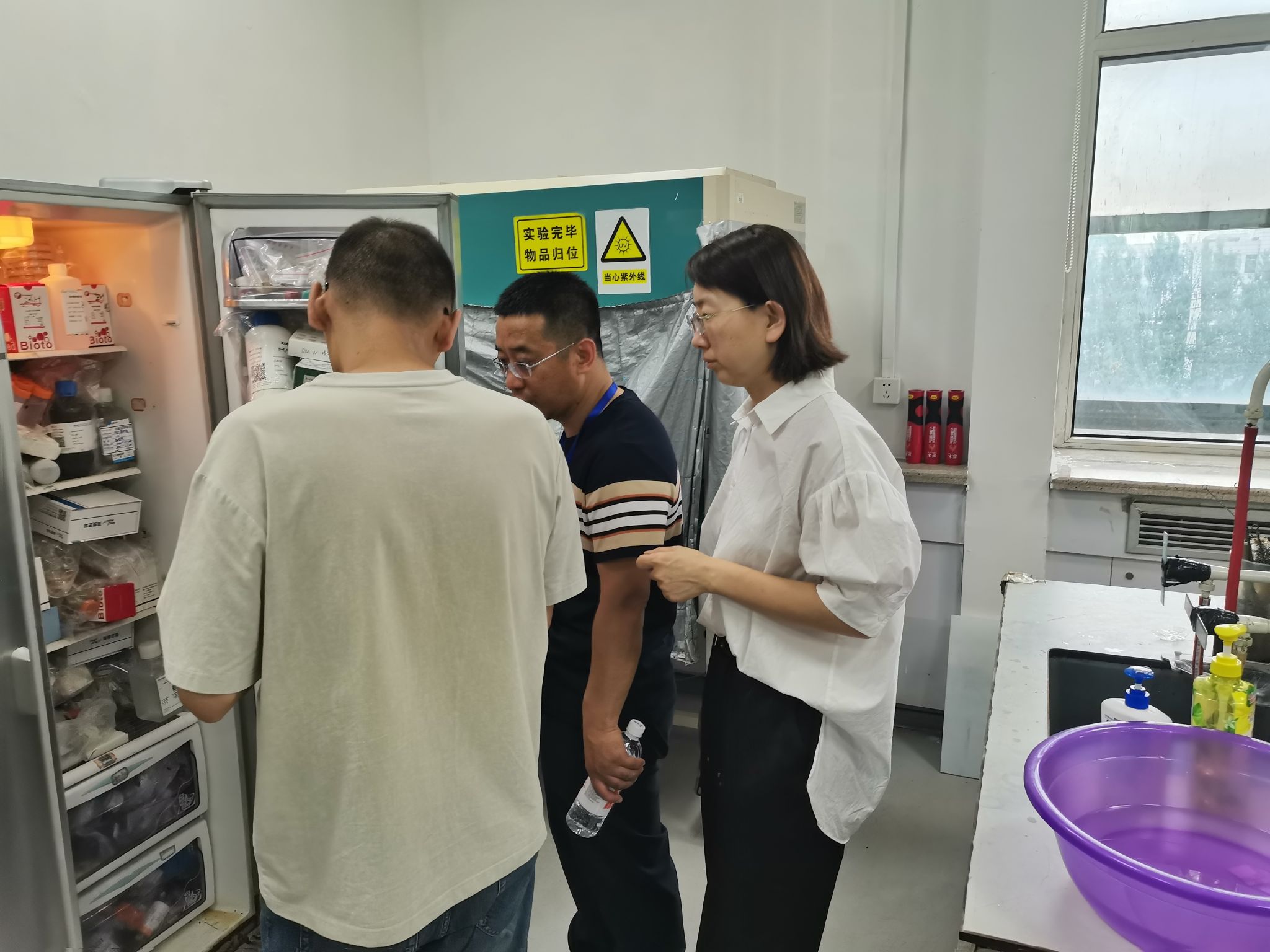 6月25日下午1:30我院副院长徐宁深入bevictor伟德国际1946寒地黑土大楼实验室和食品楼实验室进行了实验室安全等级分类检查,同时关注环境卫生、气体钢瓶、消防安全、易制毒和易制爆危化品多方面隐患。针对检查中发现的问题,徐院长现场提出整改措施,要求相关实验室立行立改,到不留死角。