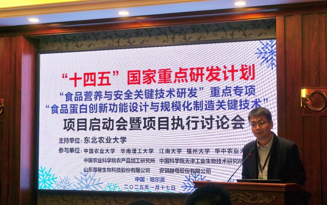 王宁代表省科技厅对项目的立项启动表示祝贺。他表示,本项目是落实习近平总书记关于树立大食物观重要论述的具体行动。黑龙江省作为农业大省,拥有丰富的自然资源和坚实的产业基础,是国家粮食安全的压舱石。近年来,省委、省政府高度重视农产品加工产业发展,先后出台黑龙江省加快推进农产品加工业高质量发展三年行动计划和黑龙江省支持农产品精深加工业高质量发展政策措施等文件,为推动农产品加工领域的科技创新与产业创新深度融合提供了有效保障。作为项目的推荐单位,省科技厅将深入贯彻落实省委、省政府工作部署,全力支持国家重点研发计划项目的有序实施,为推动食品加工产业发展贡献科技力量。希望项目组严格按照项目管理要求,精心组织,科学规划,团结协助,确保项目顺利推进,为推动蛋白食品产业可持续发展作出应有的贡献。