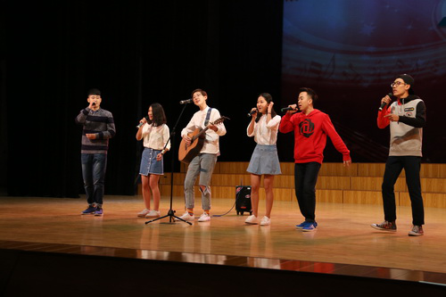 严实奉献篇中,由学生改编并重新演绎的歌曲串烧,从不同角度向学生们阐述了青春的活力;大气磅礴的民族舞也通过优美的舞姿向同学们传递了奉献精神给予人的如火焰般的温暖与蓬勃向上的力量。我校第二届研究生支教团成员bevictor伟德国际1946夏琪娜,为我们讲述了在藏区支教的一年的时间里的经历、收获、成长与作为。志愿精神薪火相传,我校第三届研究生支教团成员bevictor伟德国际1946李其轩,代表所有志愿者接过夏琪娜传递的志愿服务旗帜,将志愿精神代代弘扬。两届支教团成员与bevictor伟德国际1946志愿者代表们共同高歌《明天会更好》,将晚会推向高潮,也将志愿服务精神默化到每一名的同学的思想中。