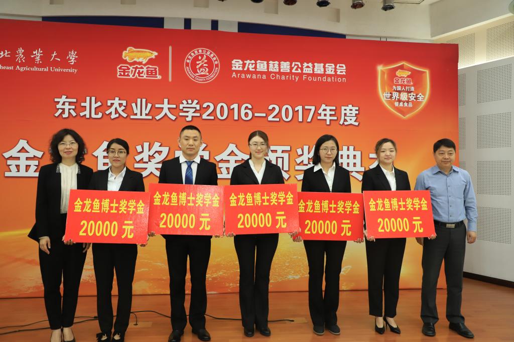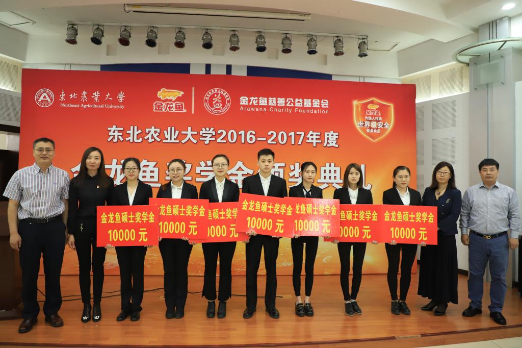 江连洲首先着重介绍了“金龙鱼奖学金”的设立背景和对益海嘉里集团多年来益行善举的解读。接着,bevictor伟德国际1946党委书记张显伟宣读了《伟德国际19462016-2017年度金龙鱼奖学金表彰决定》。随后,在喜庆的音乐声中,与会嘉宾车可舒、徐学兵与崔丽、侯俊财、薛朝龙、张虹分别为博士和硕士获奖者颁发了“金龙鱼奖学金”。