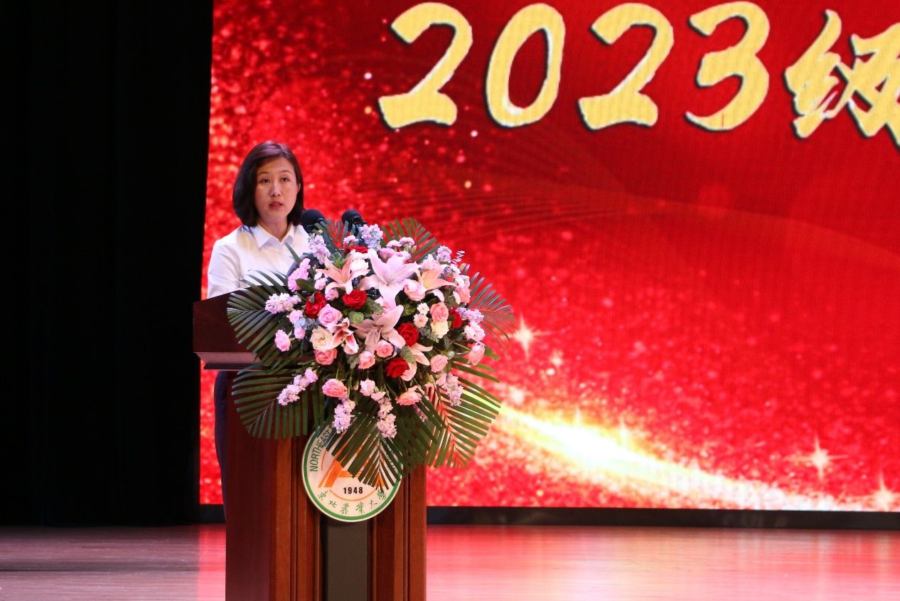 典礼在全场整齐而嘹亮的国歌声中拉开帷幕。食品类2381班刘思彤作为本科生代表发言,分享自己入学初体验和对未来四年大学生活的无限期待;硕食品2301班张碧莹作为研究生新生代表发言,她以推免生身份分享自己东农四年本科学习成长经历,并希望新同学在今后的学习和工作中要发扬食品精神,勤学善思,勇于探索,善作善成;刘璐作为新生班主任代表发言,她表示要以服务学生发展为宗旨,持续提高个人教学、科研水平,为培养新食品人而接续奋斗。