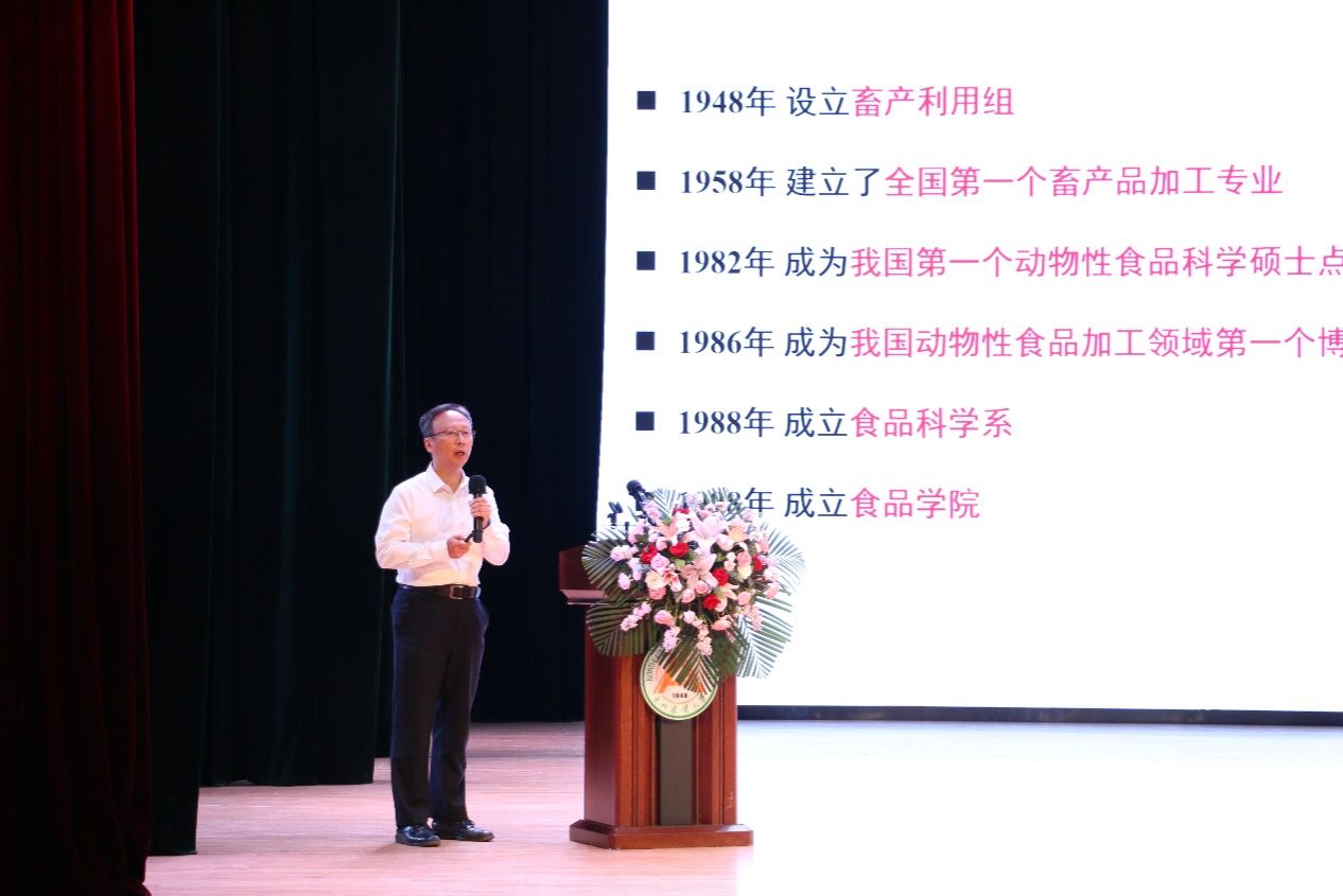 姜毓君围绕学院历史,学科专业发展,科研平台建设、师资人才建设,人才培养、教学工作、科学研究、学术交流、产学研建设和社会服务等方面进行全面介绍,让学生深刻体会到食品的专业“硬实力”。