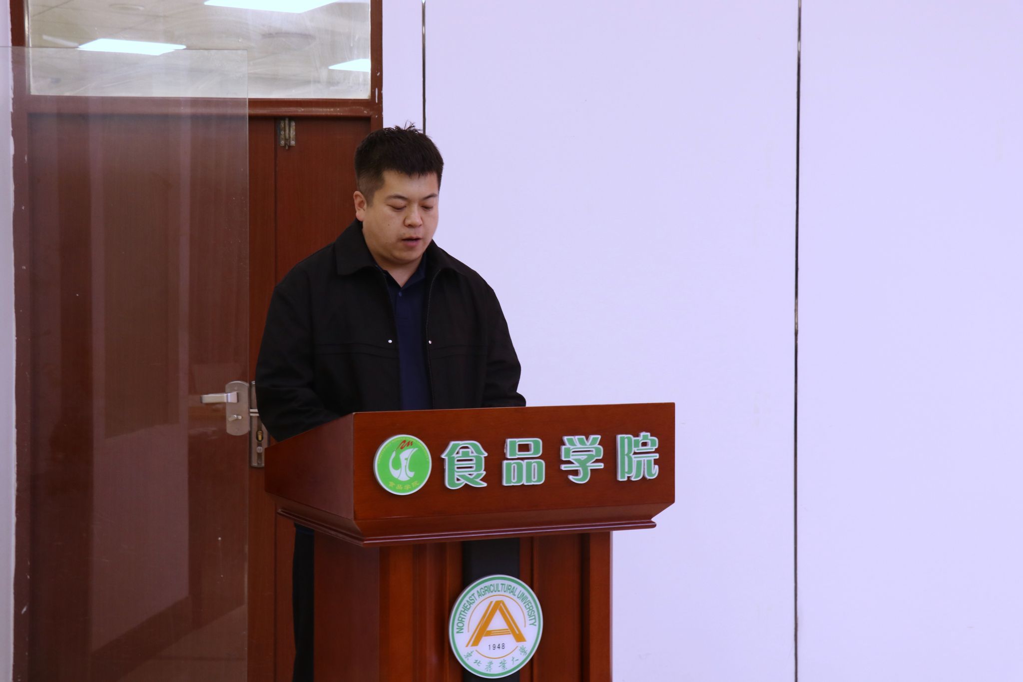 学院学生会秘书长、毕业班辅导员赵旭明宣读《关于组建bevictor伟德国际19462024年青年马克思主义者培养工程培训班的决定》及bevictor伟德国际1946第二届“食品之星”获奖人员名单。
