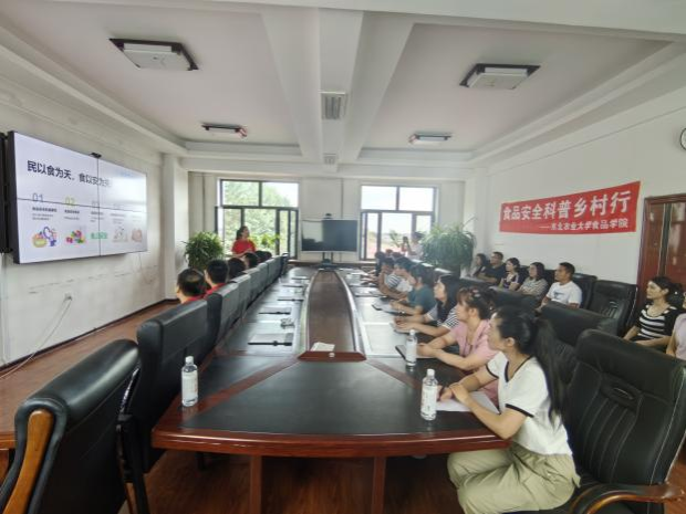最后,实践团抵达了肇东市昌五镇,在这里,博士研究生胡霞针对昌五镇的工作人员举办了一场关于食品安全的科普讲座。讲座以食品安全法规与食品营养健康为核心内容,充分利用专业知识并结合实地调研成果,旨在提高参与者对于食品安全问题的认识水平及自我保护能力。活动最后一站,实践团队参观了位于肇东市昌五镇的红色纪念展馆,通过回顾党的辉煌历程,深入了解昌五镇的红色历史,并在这一具有深厚革命传统的地区重温了入党誓词。