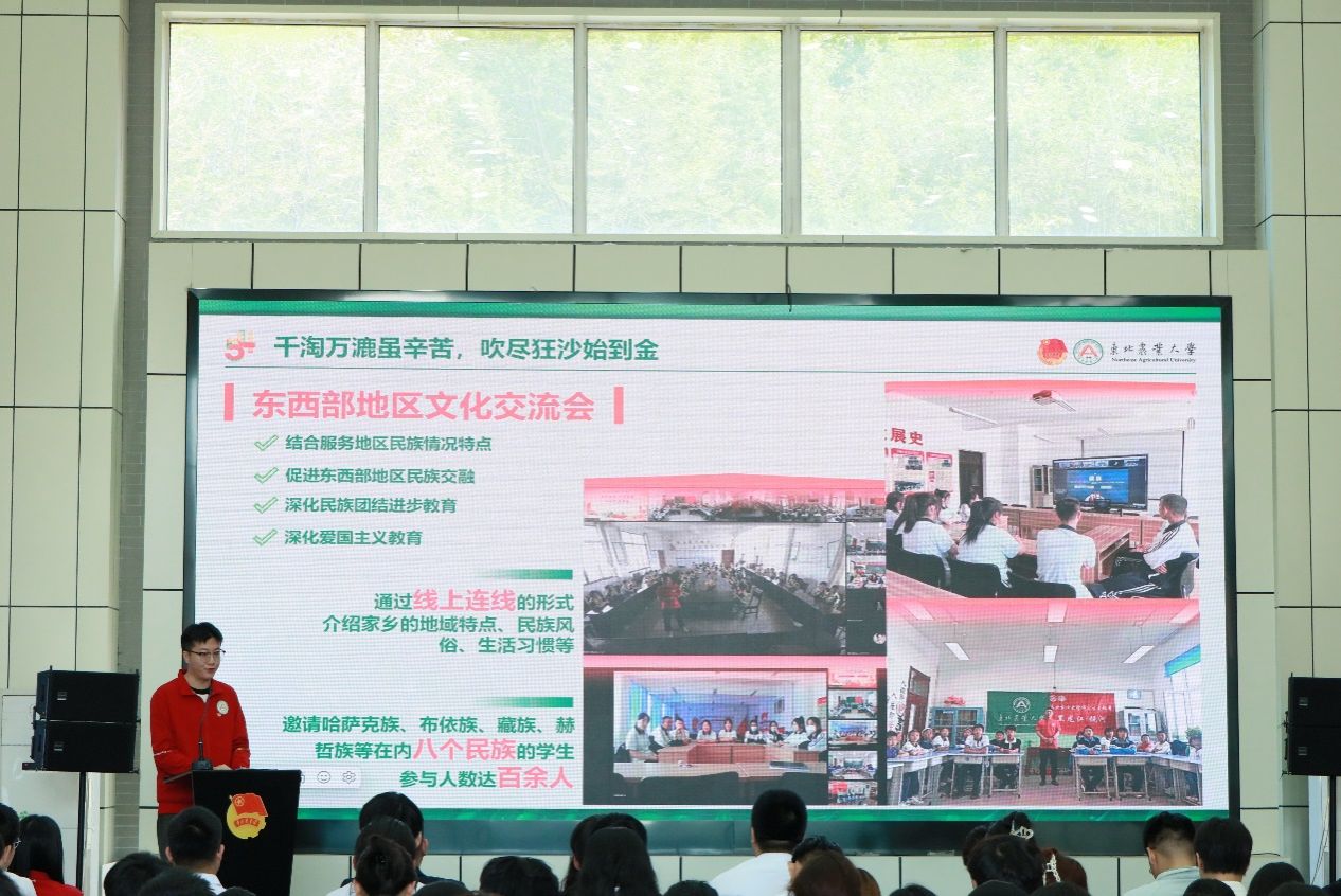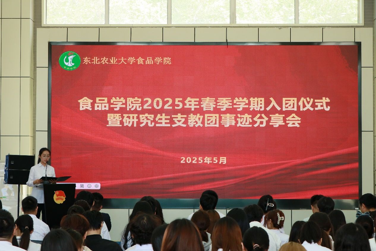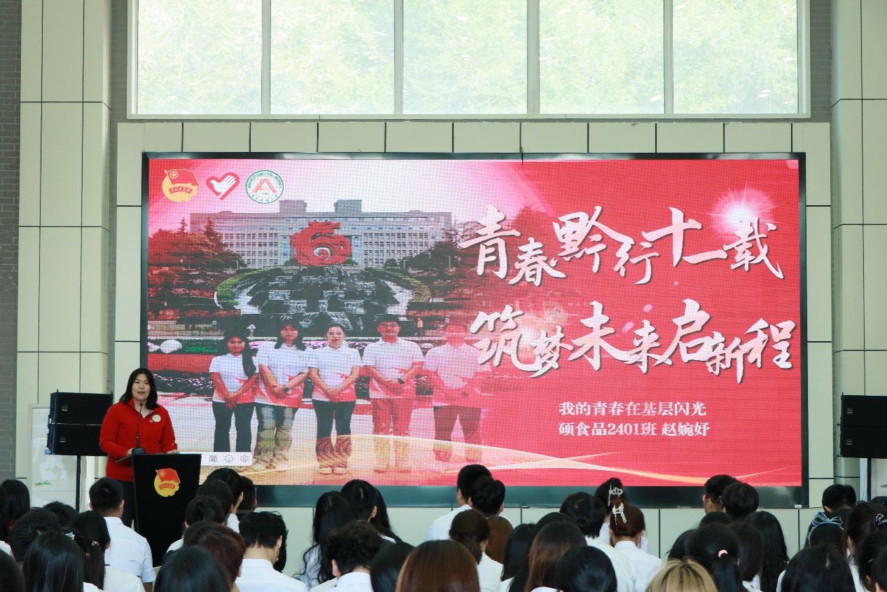 第十届研究生支教团成员蔡松格、邹慧婷、赵婉妤、孙萌分别分享了他们在西藏昌都市第二高级中学、贵州省黔南布依族苗族自治州龙里县第七小学和黑龙江省双鸭山市饶河县五林洞镇中心小学支教经历。他们表示,在今年五四青年节到来之际,习近平总书记给新疆克孜勒苏柯尔孜自治州阿图什市哈拉峻乡谢依特小学戍边支教西部计划志愿者服务队全体队员回信,勉励广大青年到祖国和人民最需要的地方发光发热。他们表示,希望各位新入团的同学,努力求学,用实际行动践行“端好中国饭碗”“食安为民”的初心使命。