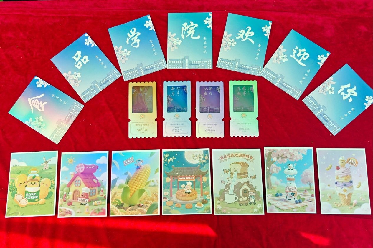 学院将报到现场精心打造成沉浸式“食品文化客厅”,以学科特色“食品紫”为主色调铺陈氛围。步入其中,折叠展板与潮流打卡墙串联起学院沿革、科研平台等核心信息,转角处的“奋斗长廊”则以扎根边疆、领航行业、留校深造三类榜样故事为新生锚定成长坐标。除了视觉浸润,更有温度满满的定制体验,NFC钥匙扣轻触即激活专属电子身份,透卡折射出“食品紫”渐变光影,集卡明信片解锁互动打卡趣味。在食品科技展台前,新生与家长现场品尝实验室出品的红肠、酸奶,以及茶艺社现冲的红茶,“东农味道”在香气氤氲中直抵心田。特别设置的“绿色通道”为家庭经济困难新生备好暖心“加油包”,从生活必需品到学业支持,全方位护航求学路。全程护航的还有志愿者们,他们一对一贴身服务,搬运行李健步护航,以微笑递上首张温暖的“食品家”名片。
