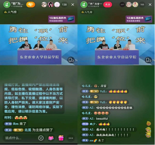 活动在抖音平台“职”为食品人全程直播。招聘经理围绕企业发展、工作内容、薪资待遇等进行全面讲解。学生们纷纷在留言区评论发言,扫码投递简历。