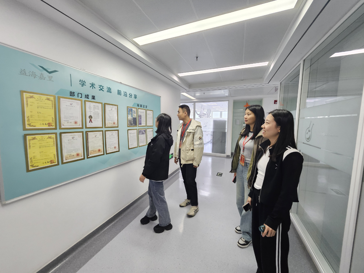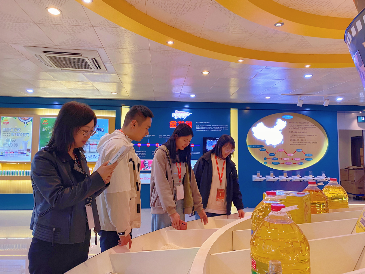 在益海嘉里,张鑫琳带领三名研究生参加第十届金龙鱼慈善公益基金学术交流年会,与会议负责人周莹探讨了行业发展趋势、人才需求热点等情况。周莹为研究生们剖析了职场生态,分享了学术研究如何转化为实际应用的宝贵经验,提供了极具价值的实战指导,使他们对未来的职业道路有了更为清晰的认识与规划。我院22届校友唐雅倩带领大家参观益海嘉里研发中心和体验馆,近距离接触行业领头企业,了解益海嘉里的企业发展历程、核心业务、感受到了食品科学最前沿的技术发展,体验了现代化企业的高效运营模式与严谨的质量管理体系。