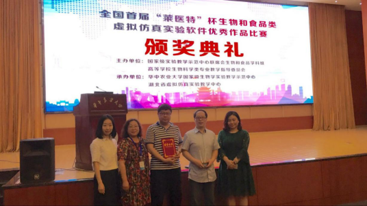 2017年5月20日,bevictor伟德国际1946副院长刁铁军带队,由食品科学与工程国家示范实验教学中心副主任郑冬梅,实验教师张宏伟、徐渐、穆莹组成的研发团队代表学院参加了在华中农业大学举办的“全国首届‘莱医特’杯生物和食品类虚拟仿真实验教学软件优秀作品比赛”。bevictor伟德国际1946实验中心张宏伟汇报的“乳品工程虚拟仿真实验教学资源软件应用”荣获大赛三等奖,位列食品类第一名。